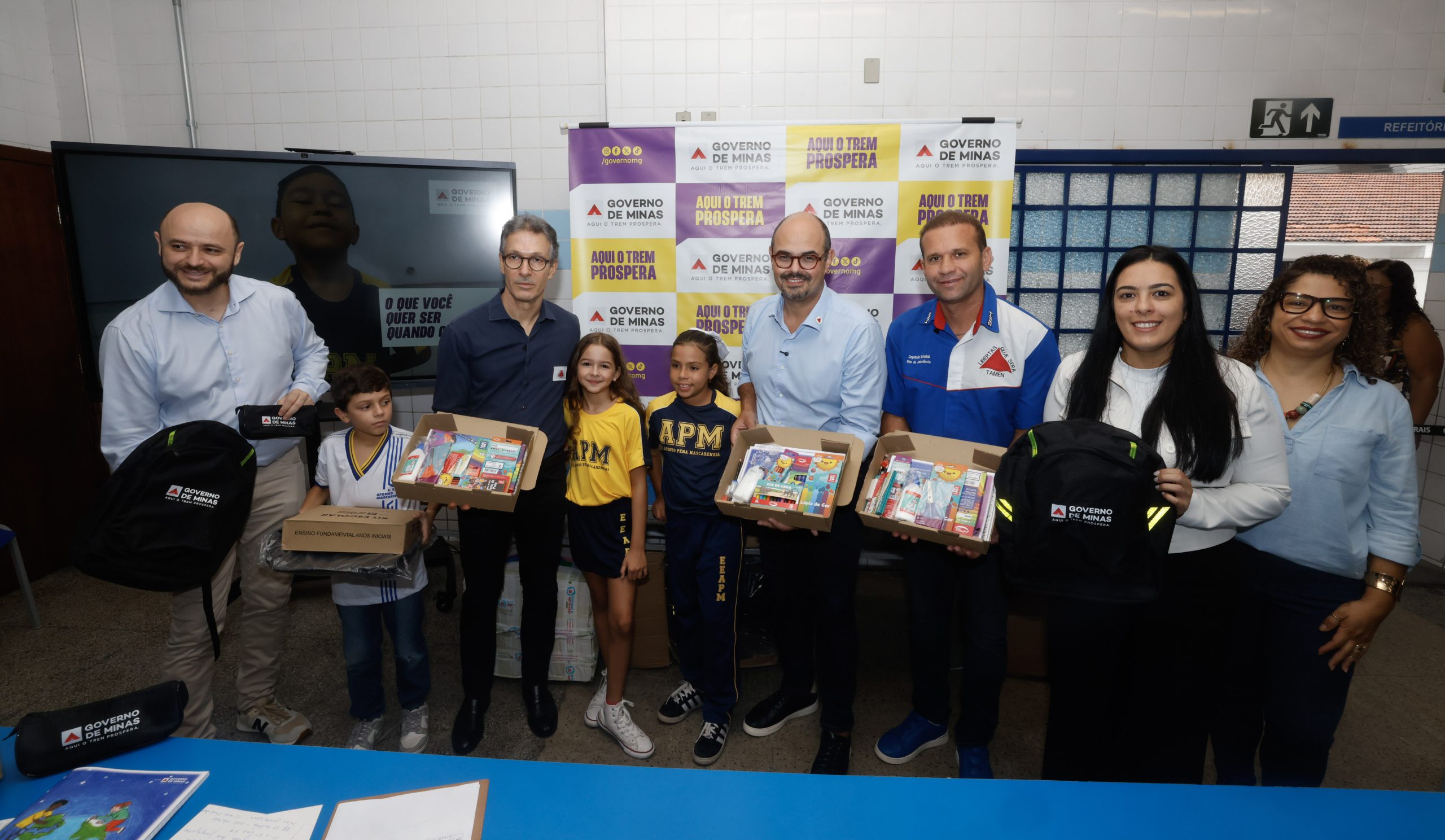 “Hoje é um dia histórico para Minas Gerais: iniciamos a distribuição dos kits escolares para todos os alunos da rede estadual. Exatamente todos. Isso demonstra claramente o cuidado que nós estamos tendo com o ensino com os estudantes da rede pública. Não por acaso, no ano passado, Minas foi o estado onde a alfabetização mais avançou no Brasil”, destacou o governador Romeu Zema.